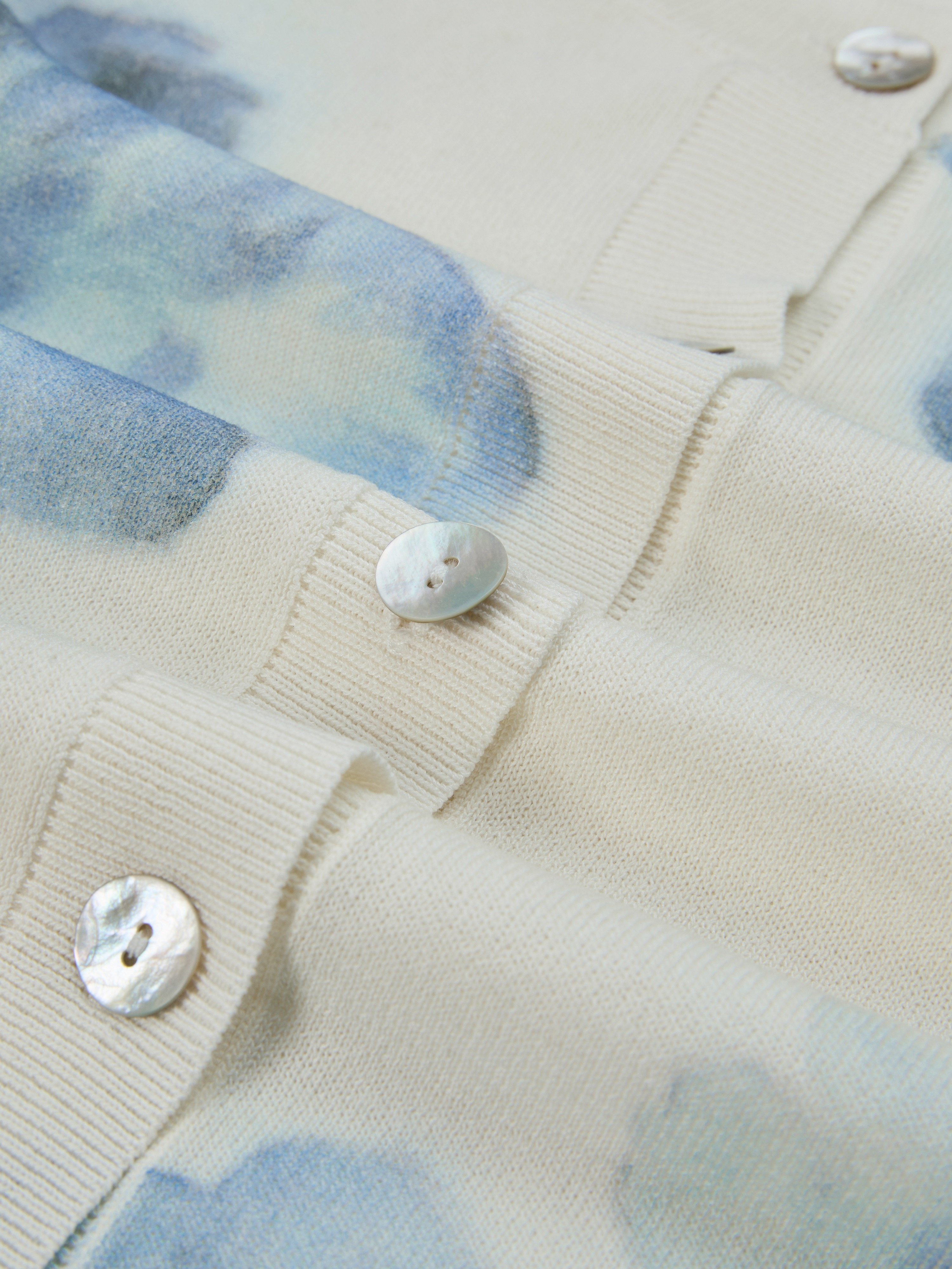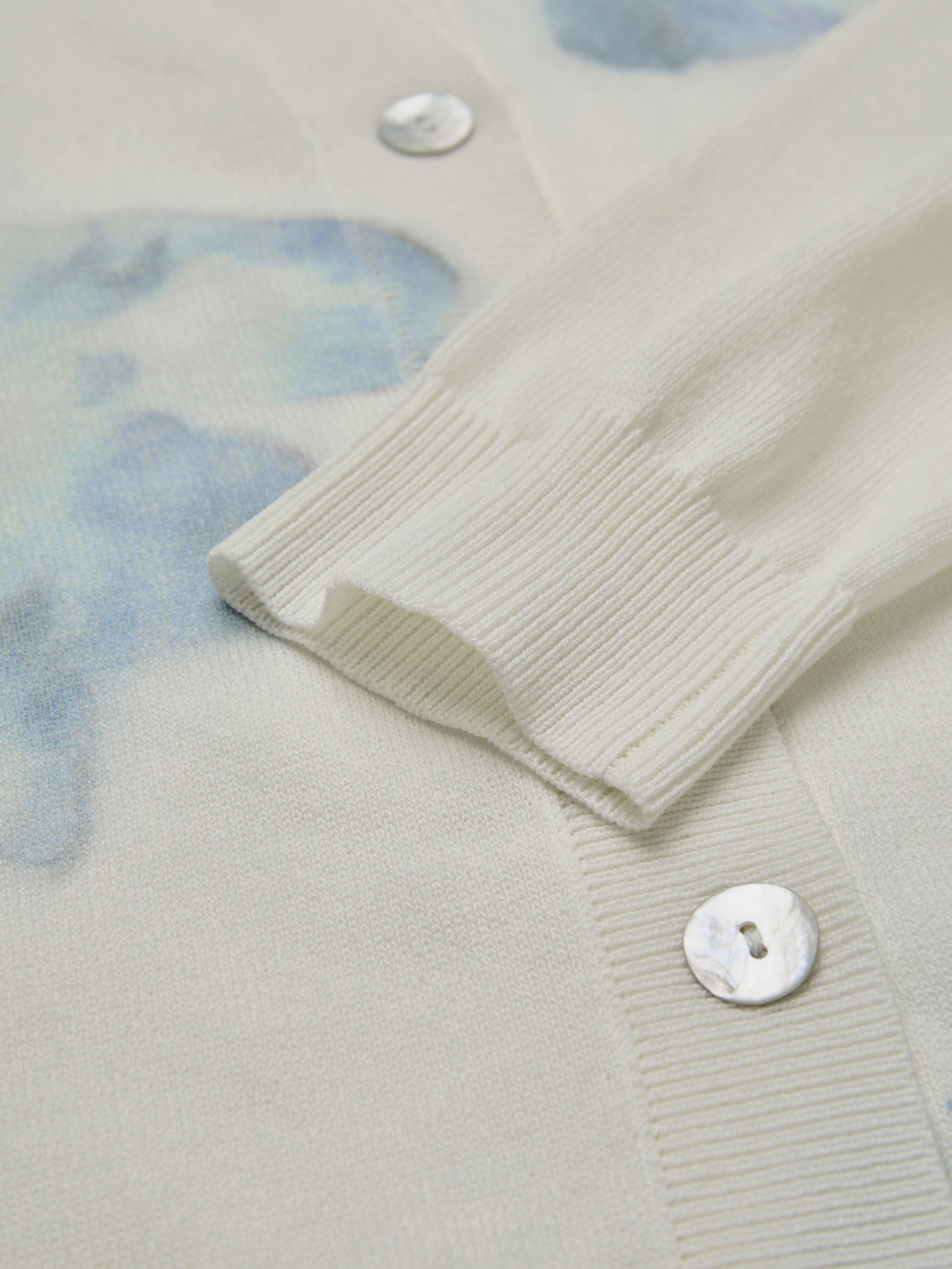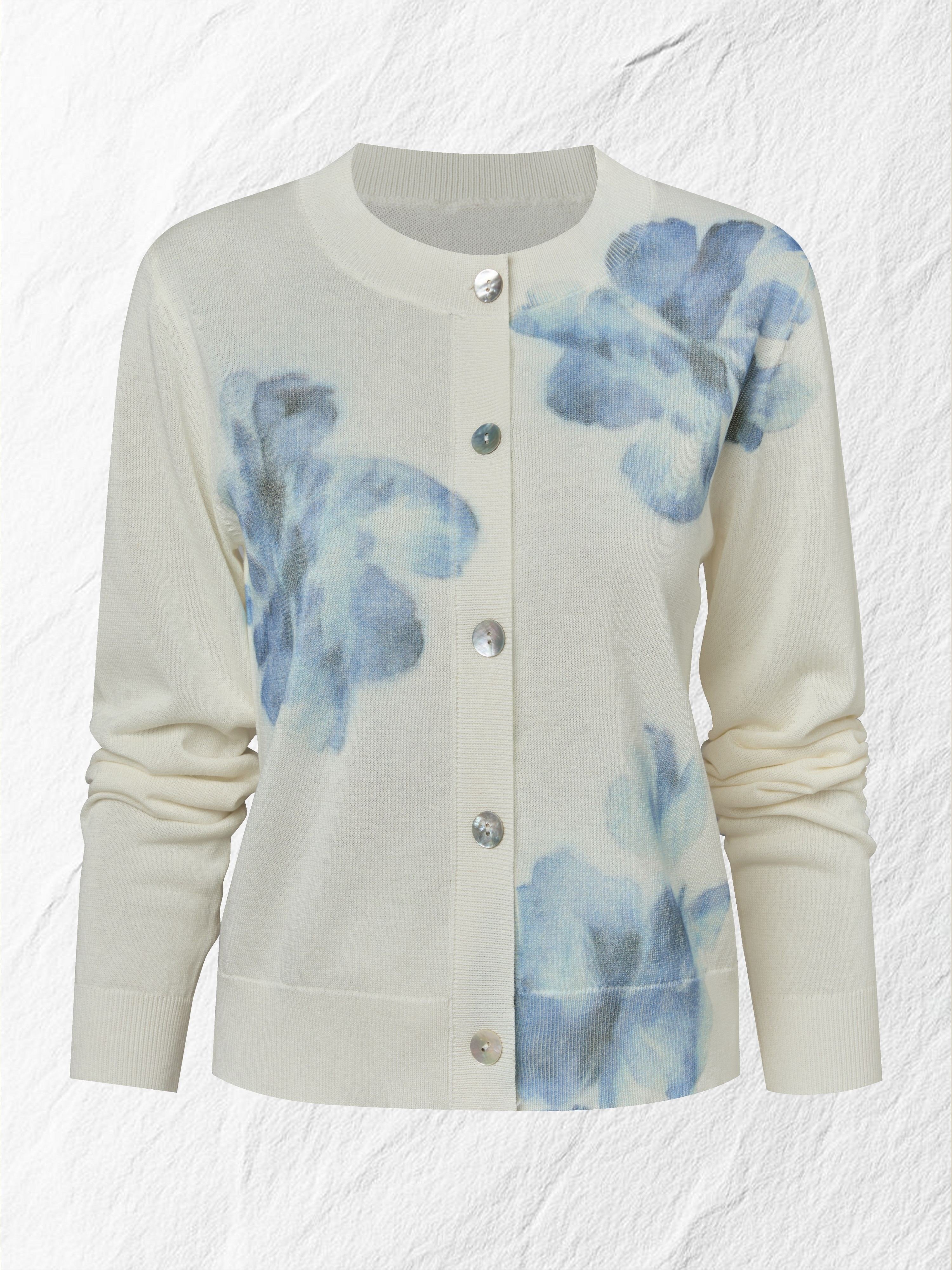 Wool Cardigan, Long Sleeves, Round Neck, Floral, Button Design, Vacation, Vintage, White