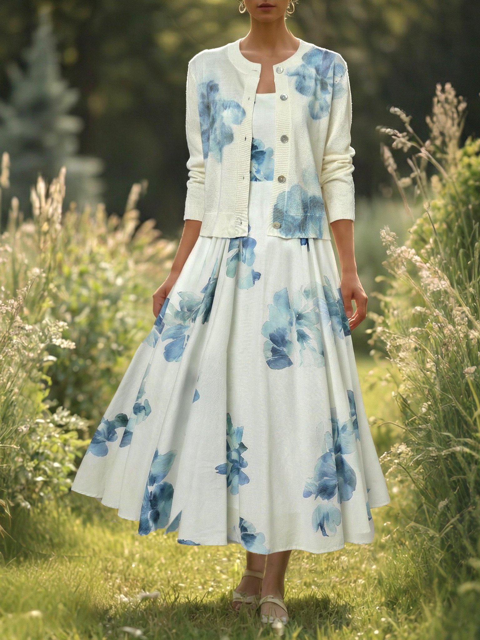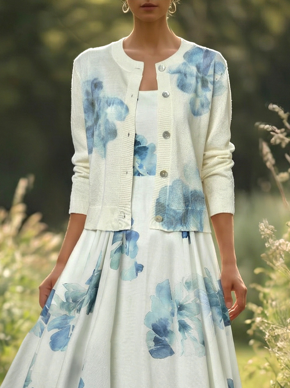 Be the first to review “Wool Cardigan, Long Sleeves, Round Neck, Floral, Button Design, Vacation, Vintage, White”