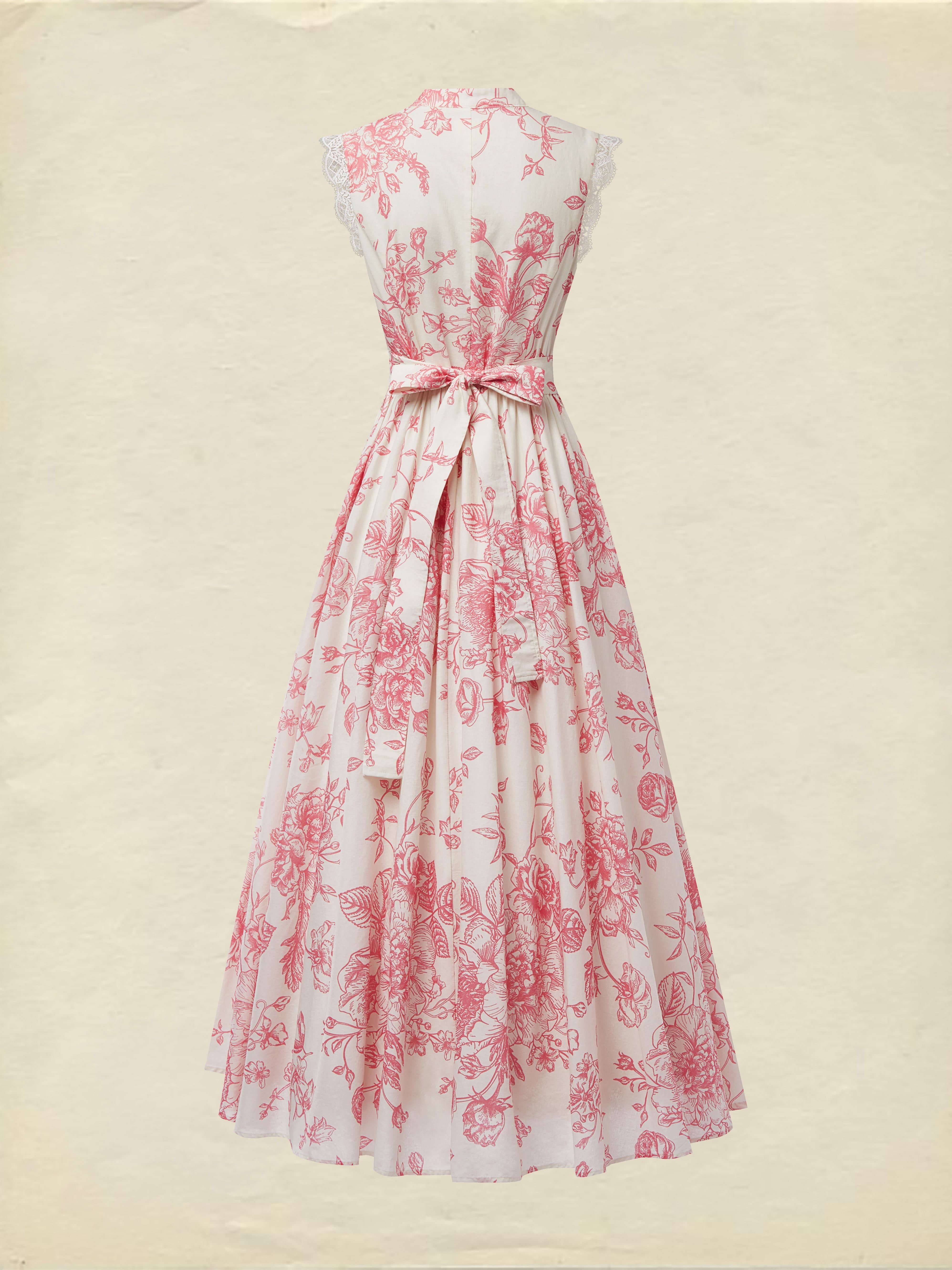 (SIZE:XS-XXL) Maxi Linen Dress , Cap Sleeves, Stand Collar, Floral, Lace, Vintage, Apricot