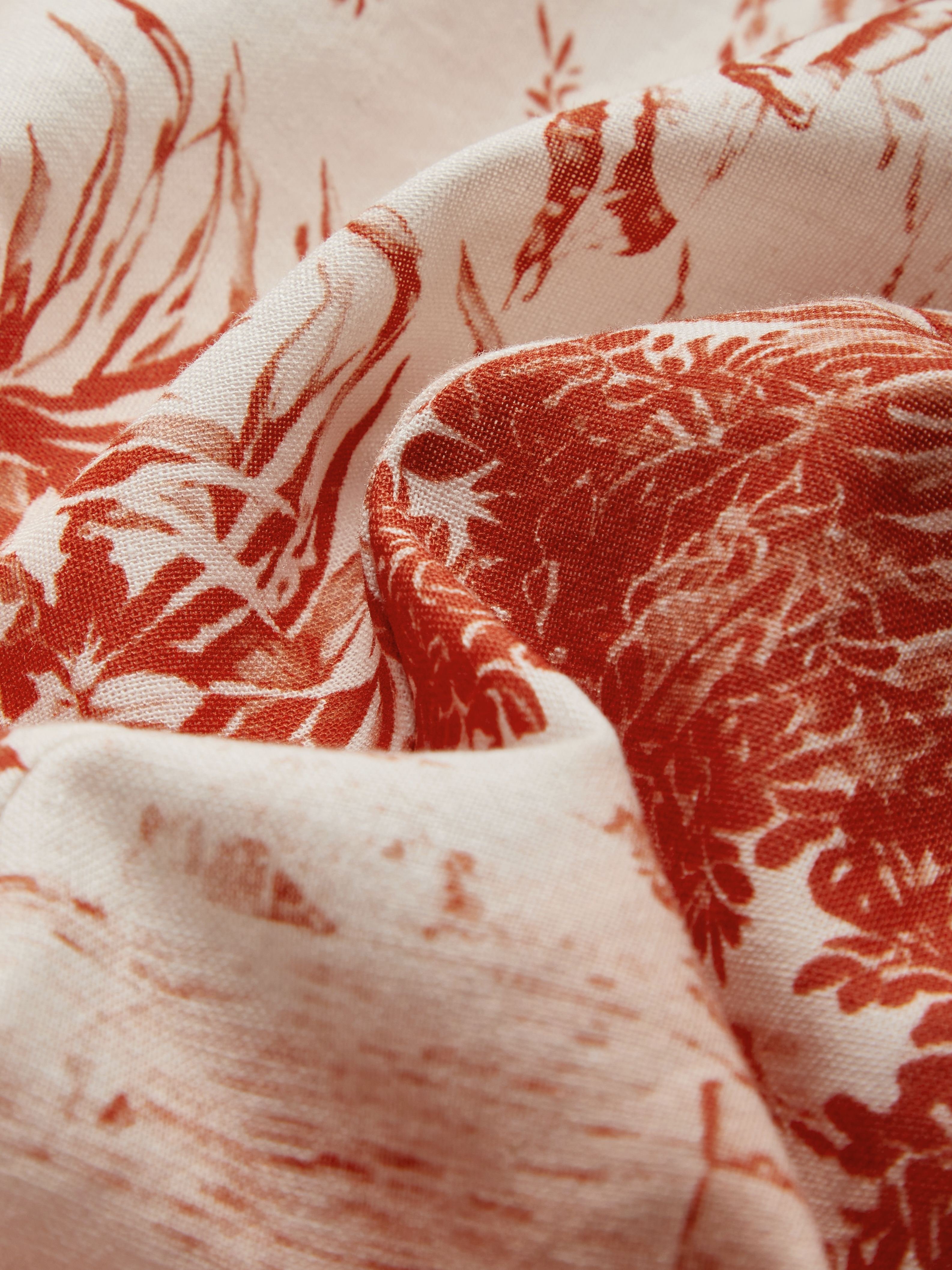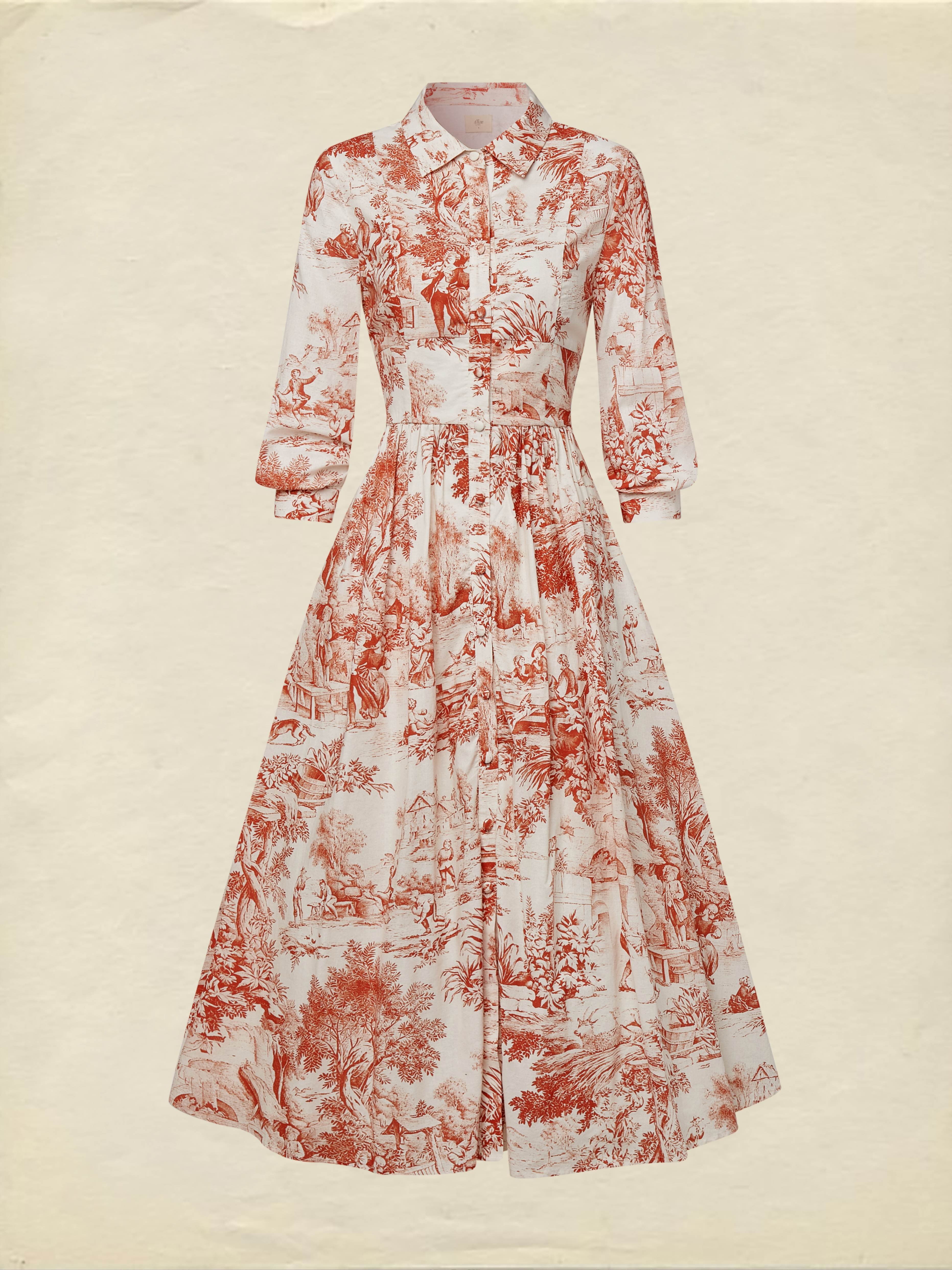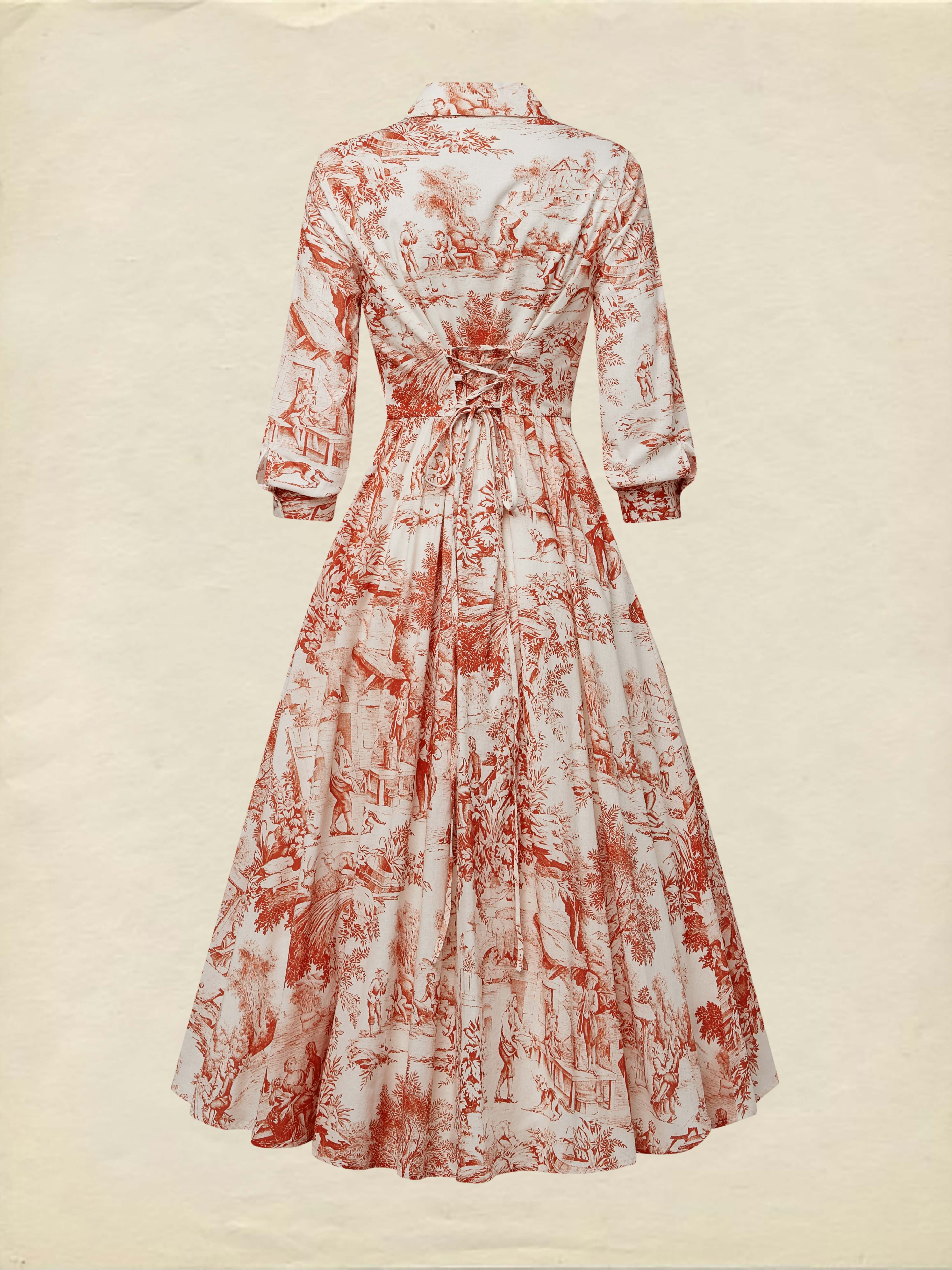 Maxi Linen Dress, Half Sleeve, Shawl Collar, Floral, Button Design, French Vintage, White