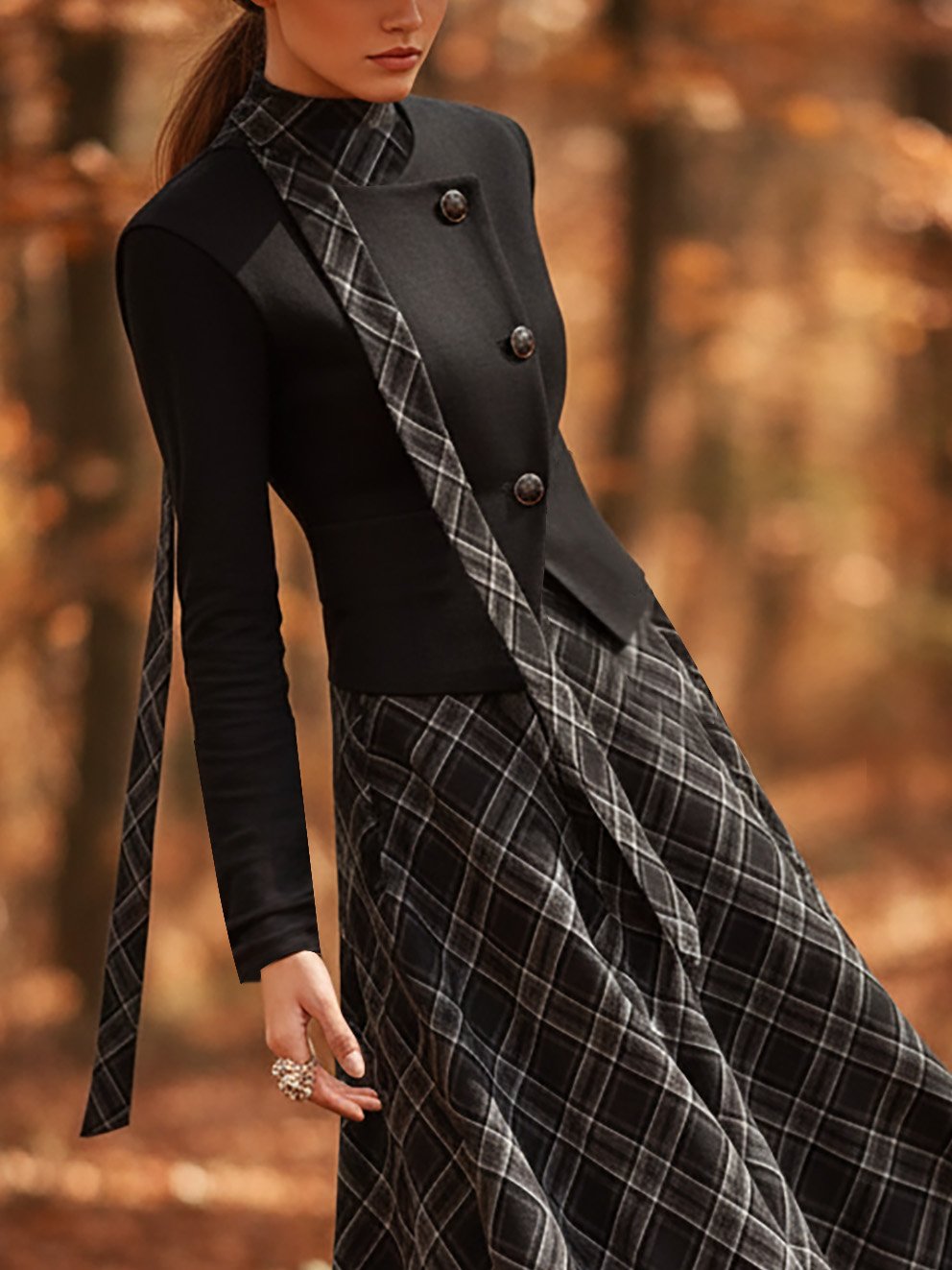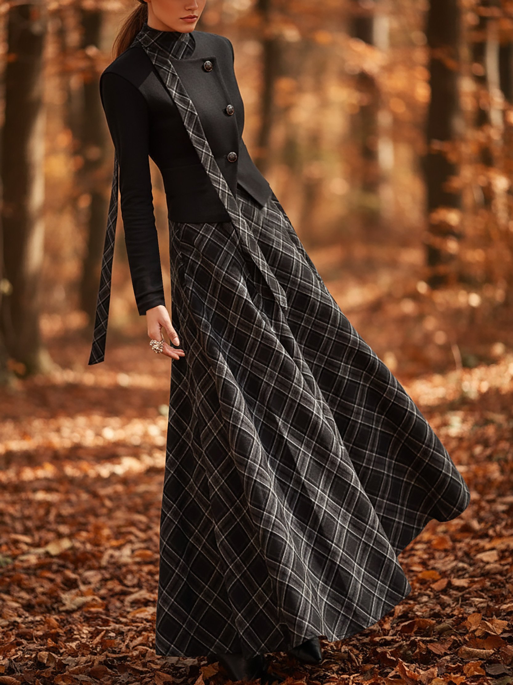 Wool Jacket, Long Sleeves, Round Neck, Plain, Button Design, Vintage, Black